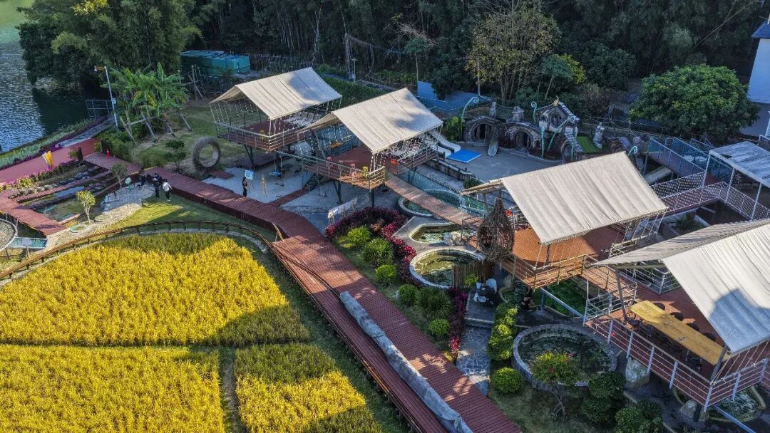 在稻田小火车的网红效应基础上,村里新增亲子研学、农耕体验、稻田瑜伽、田边音乐茶艺等组团举止,并以水经济为牵引,开放了游船形势,增多了丛林徒步、温泉疗愈、骑行慢行等产业生态,构建起“动静符合”的乡村虚耗新场景。